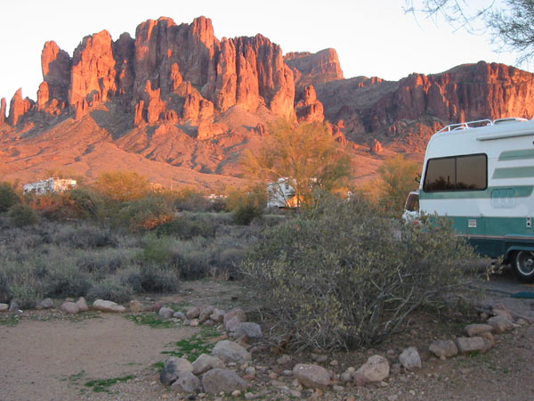 We spent several days camped at Lost Dutchman State Park at the base of the Superstition Mountains, near Apache Junction, Arizona. The views from our campsite are awesome, as is the hiking. Here are several photos.