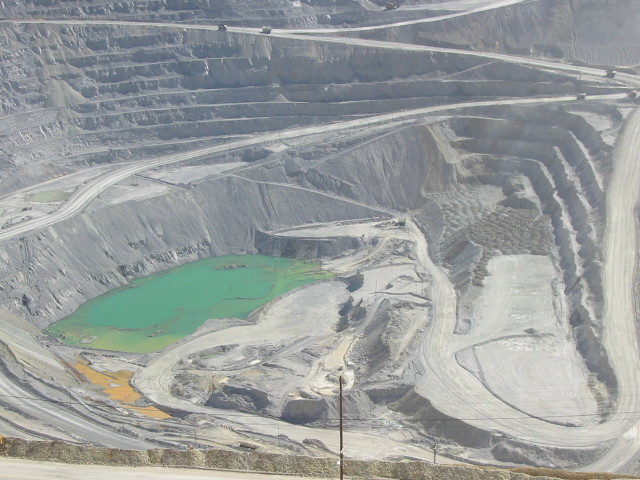salt for her grandson, Nick. A much more dramatic mineral extraction happens southwest of Salt Lake City, at Kennecott Copper's open pit mine. The hole is 2-1/2 miles in diameter and 3/4 mile deep -- one of two man-made objects visible to the astronauts. |